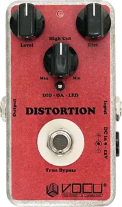 VOCU 3Mode Distortionは、3種類のクリッピング方式(ダイオード/オペアンプ/LED)を切り替え可能なディストーションペダルです。RAT系の太く濃厚な歪みに加えて独自のフィルターで高域までワイドに再生し、低音が潰れにくい設計が特徴です。