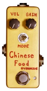 Chinese Food Overdriveは、KAMINARI GUITARS製のミニサイズ・トランスペアレント系オーバードライブです。原音を活かしたローゲインクランチから、ゲイン変化の少ないクリーンブースト、さらにNOS国産ダイオードによるRAT風のファジーな歪みまで幅広く対応します。