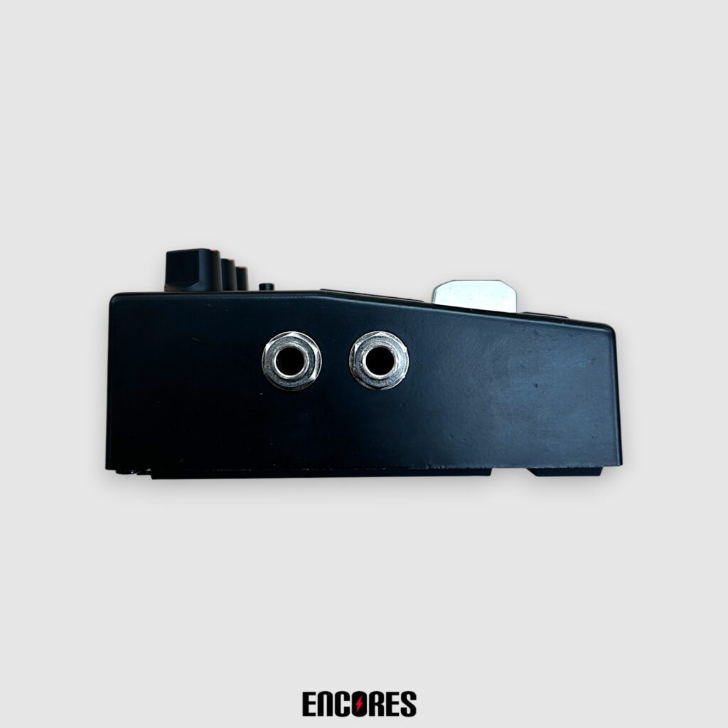 コントロール部には、ディレイ音の音量を調整するLEVEL、残響の繰り返し回数を設定するFEED BACK、そしてディレイタイムを細かく設定するためのRATIOという3つのノブが配置されています。さらに、ディレイタイムの最大範囲を3段階で切り替えるRANGEスイッチを備えており、このスイッチとRATIOノブを組み合わせることにより、例えば18.75msから最大で1200msといった、幅広いディレイタイムの設定が可能となっています。
