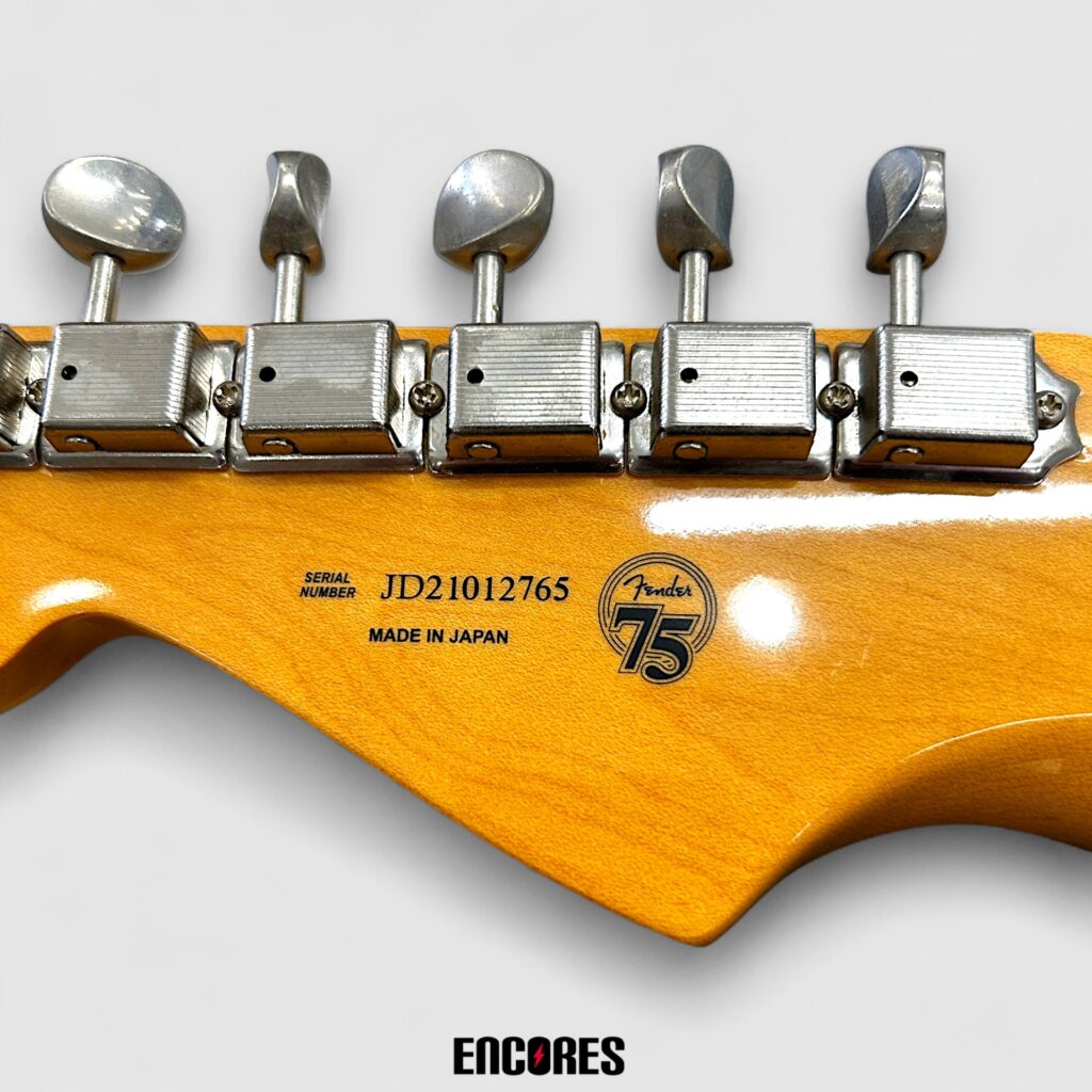 さらに、このモデルはヘッド裏にFender 75th Anniversaryのロゴが印刷された、2021年限定生産の特別仕様です。